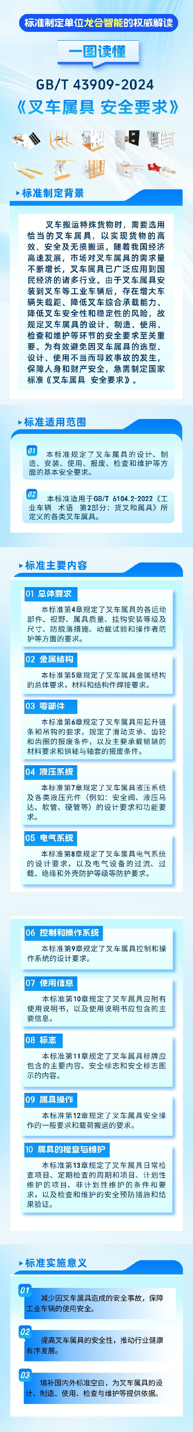 龍合智能裝備制造有限公司自2017年3月開始擔(dān)任屬具工作組組長單位以來,在上級標(biāo)委會的指導(dǎo)下、在全體組員的共同努力下,卓有成效地開展了許多工作,為促進我國工業(yè)車輛標(biāo)準(zhǔn)體系建設(shè)和促進行業(yè)整體技術(shù)進步做出了積極貢獻。截至目前,我國工業(yè)車輛屬具專業(yè)領(lǐng)域共有現(xiàn)行有效標(biāo)準(zhǔn)20項(其中國家標(biāo)準(zhǔn)3項,行業(yè)標(biāo)準(zhǔn)17項);已完成報批待批準(zhǔn)的行業(yè)標(biāo)準(zhǔn)7項;在研的屬具標(biāo)準(zhǔn)制修訂計劃項目共8項(其中國家標(biāo)準(zhǔn)2項、行業(yè)標(biāo)準(zhǔn)6項)。